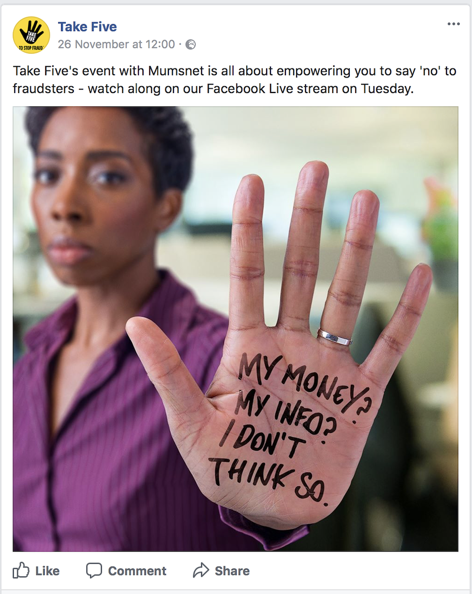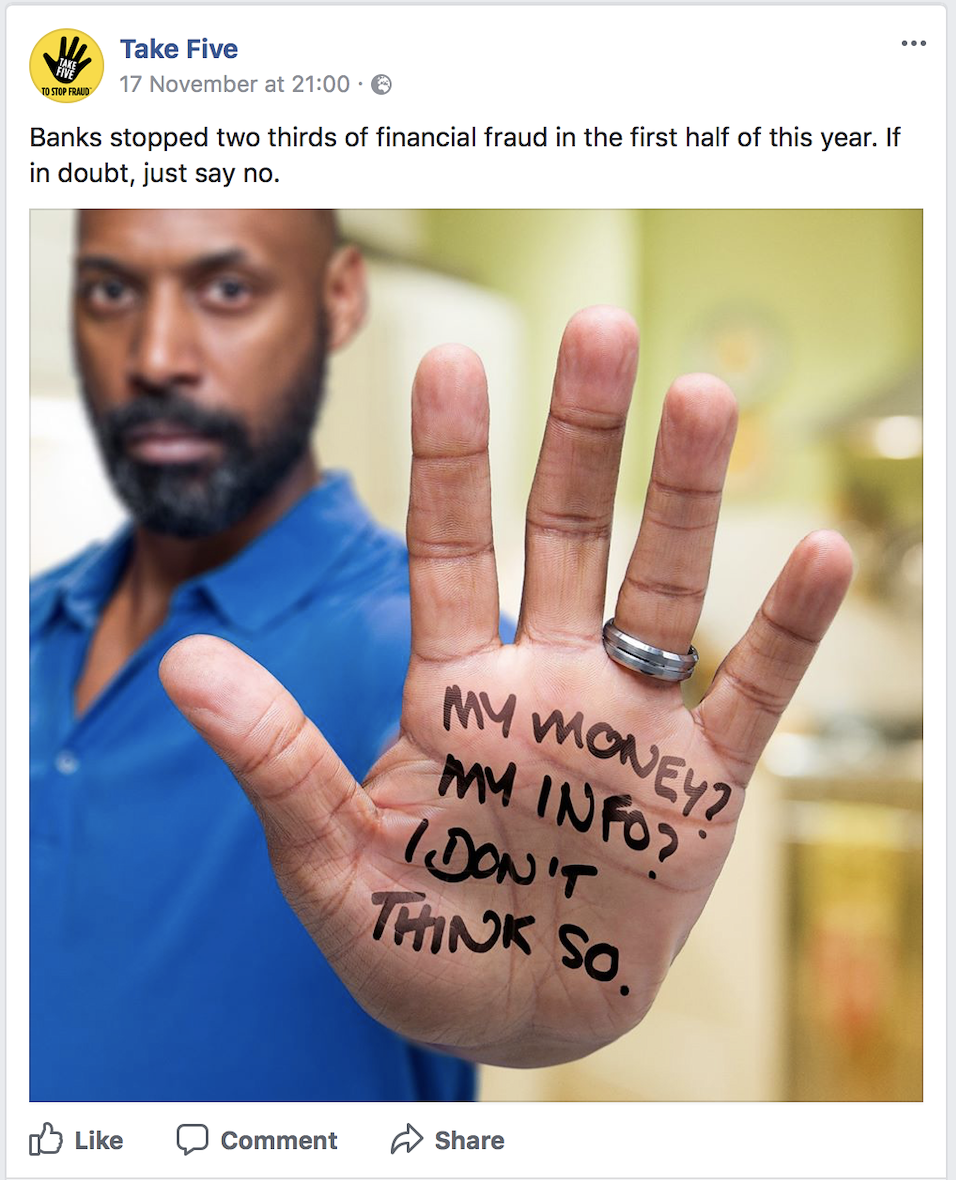 Take 5 to Stop Fraud. A campaign by the financial industry to empower consumers not to become the victims of fraud.
