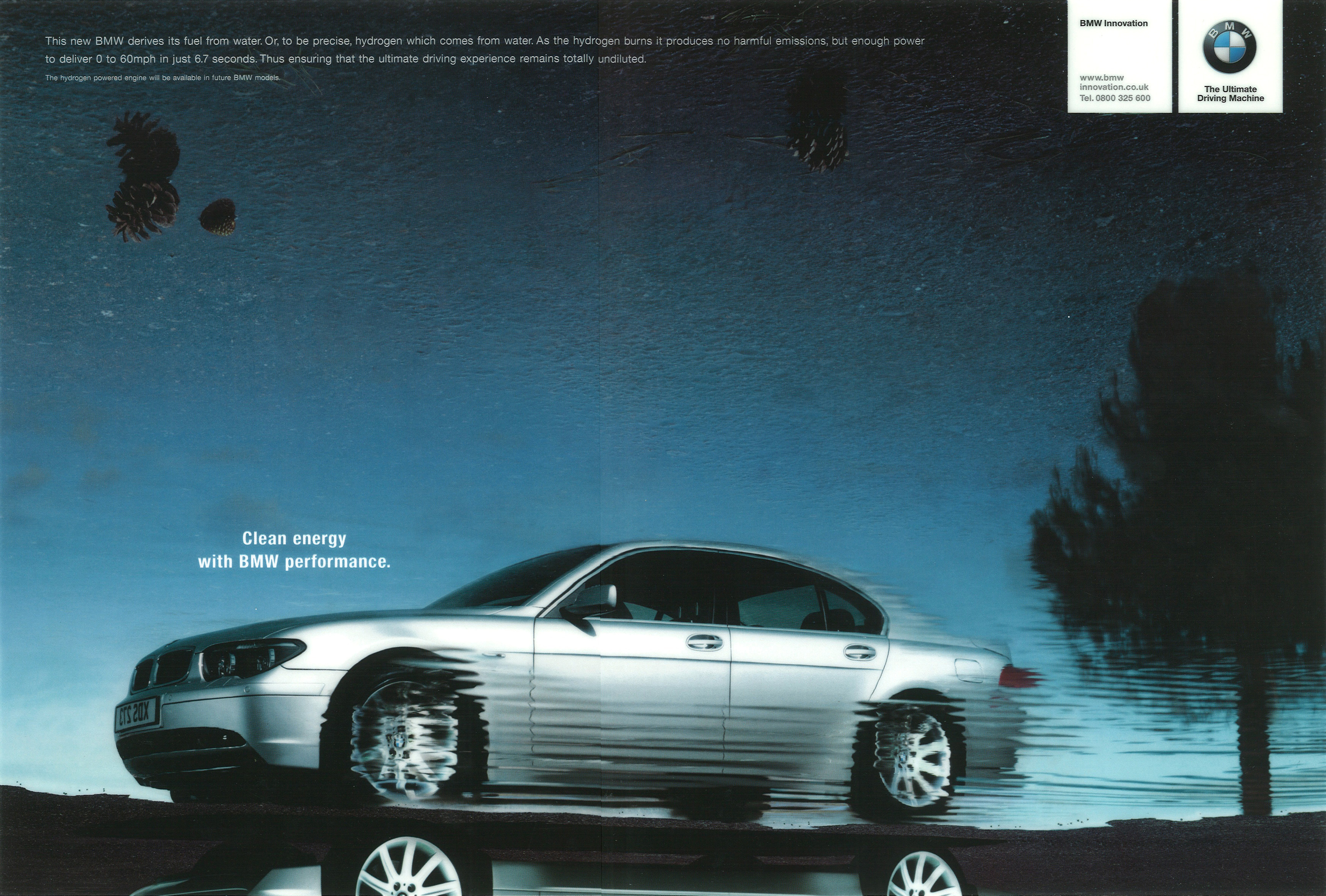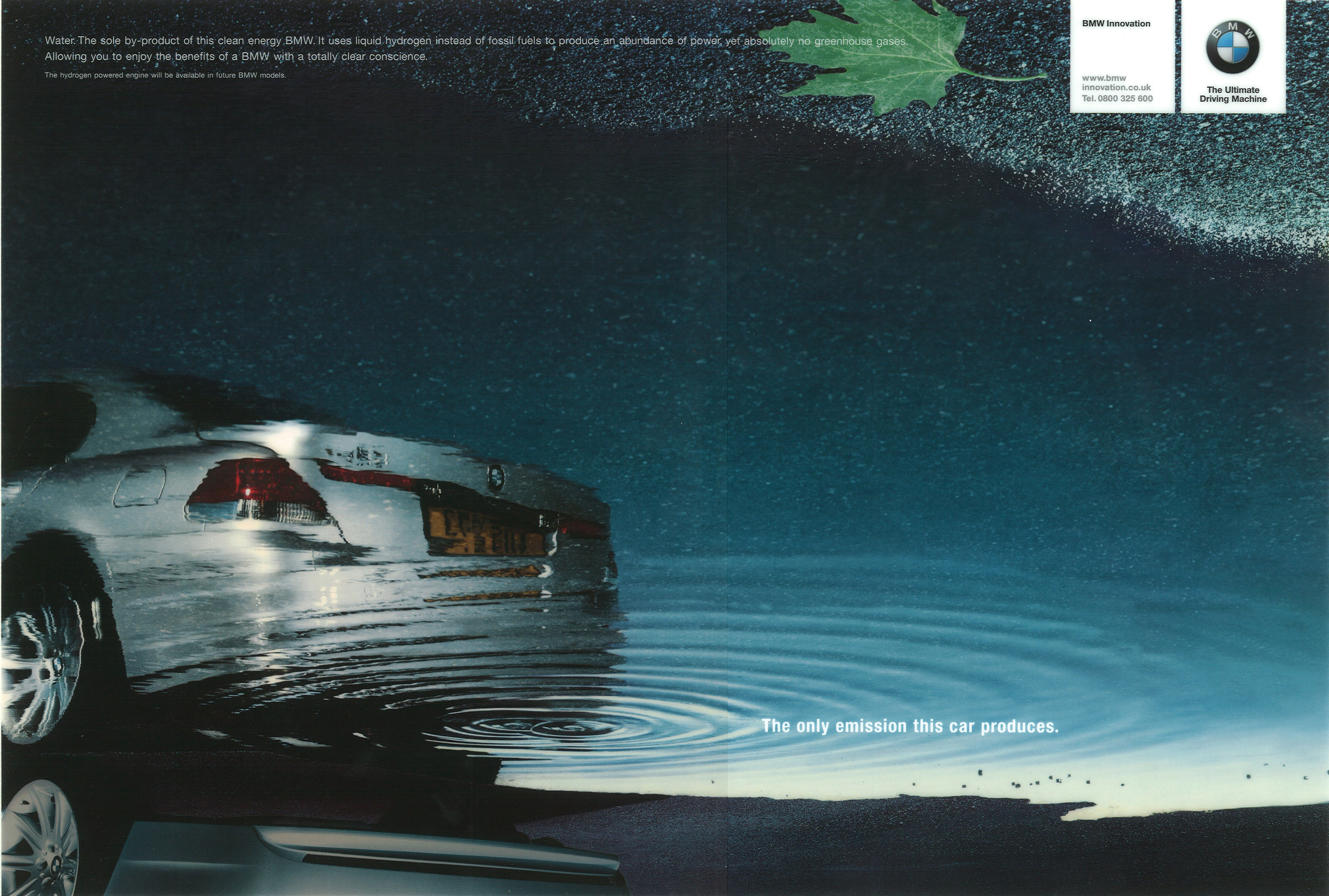 A press campaign promoting BMW hydrogen fuelled cars. A fuel made from water. The print campaign ran in international markets. Simon Stock the photographer picked up an award for the photography.